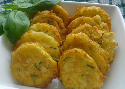 Cuketu osušíme a máčíme v těstíčku. Musí mít hustotu, aby na cuketě drželo.